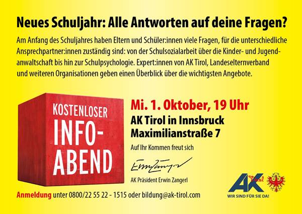 Dienstag, 19. November 2024, 18.30 Uhr – Aula Akademisches Gymnasium Innsbruck